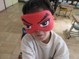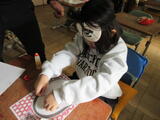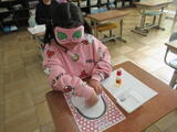 6組のこどもたちが、笑顔いっぱいの福笑い「おかめさん」に挑戦していました。