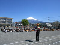 新任式、始業式は、あたたかな春の日差しの中、霞に包まれた富士山に見守られて行われました。