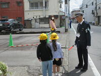 朝には雨が上がり、1年生の交通安全教室が開催されました。