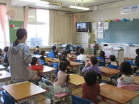 1年生は、大喜びでクイズを解いています。