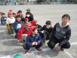 思い思いの場所で過ごしていたこどもたちは、校内に響いた「訓練です。大きな揺れが発生しました。」という放送に戸惑いながらも、自分でしっかり考えて行動し始めました。